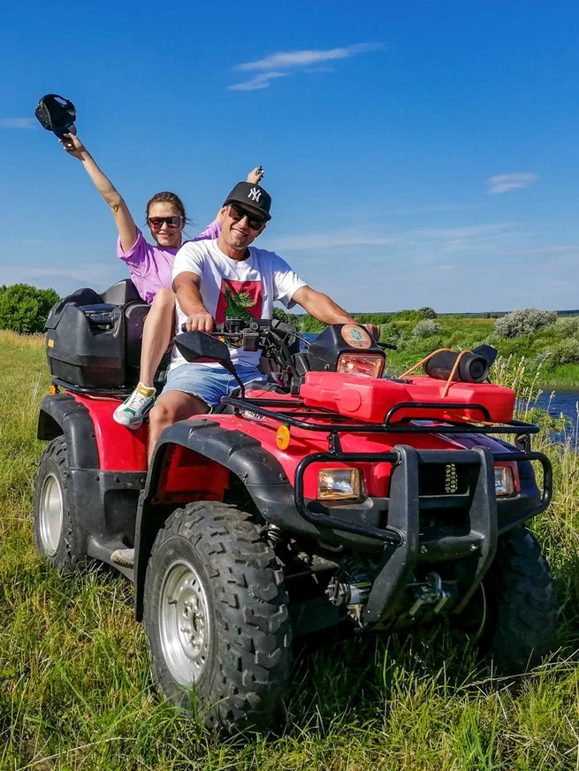 Стоимость: от 5500 рублей за 1 квадроцикл. На нем могут ехать один взрослый, двое, двое взрослых + ребенок 3-10 лет.