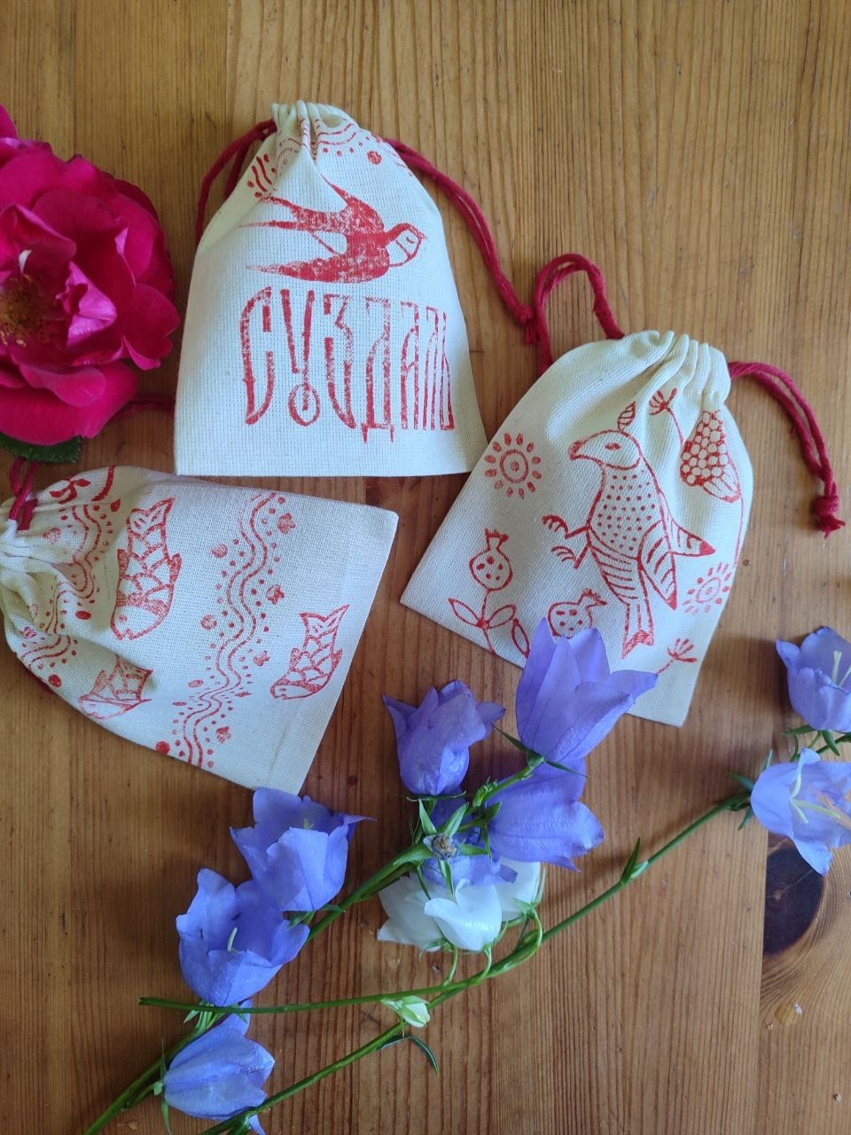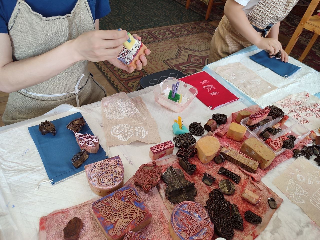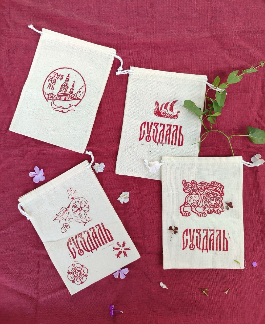 Мы будем работать уникальными цвéтками (резные деревянные штампы) с различными рисунками. В том числе разработанными нашим художником на основе древних орнаментов Владимиро-Суздальской земли (каменная резьба, фресковая роспись, резные наличники, образцы исторических тканей).
